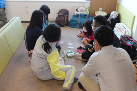 科学展示を楽しんだようです。この展示は宇宙コーナーの「宇宙ゴマ」