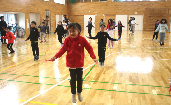ハチヨコタイム 短縄 6年リーダーが正しい短縄の跳び方をみんなに披露しました!