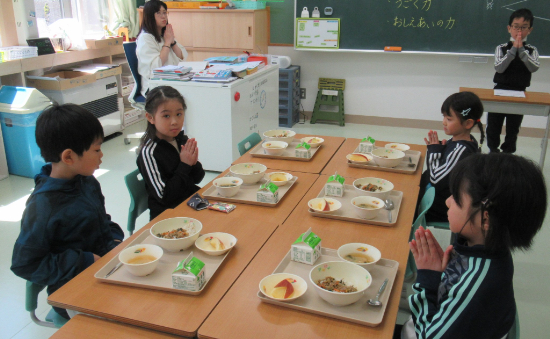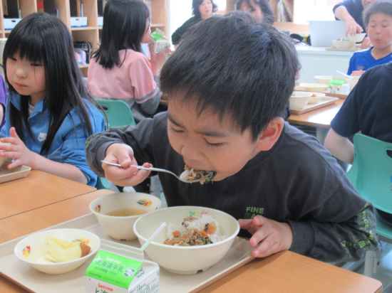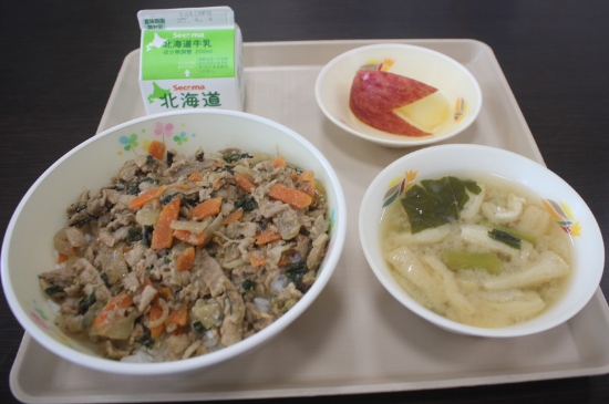 リンゴがかわいかったです。ウサギさんになっていました。 給食調理員さんありがとうございます!