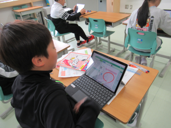 2年生 タブレットを使って「チャレンジテスト」に挑戦