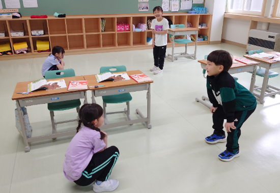 中休み 体育館で元気いっぱい遊んでいる礼小っ子