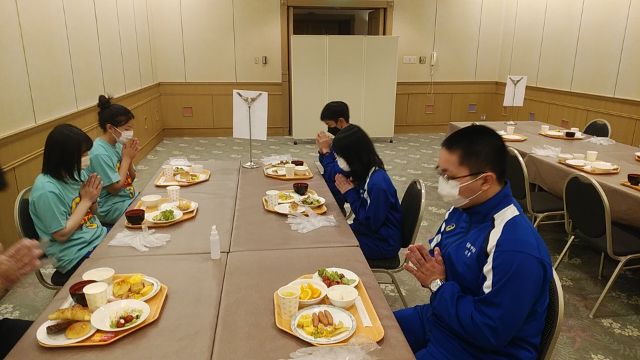 卓球、昼ご飯です。女子は団体優勝!男子は2勝1敗。まだ試合があります。男子がんばれ!
