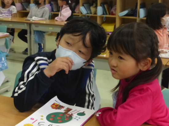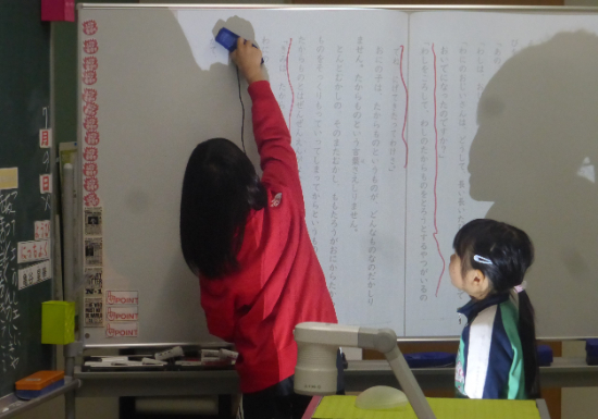 2年国語 お互いまとめた文章を読みあって、意見を出して学習を深めていました。