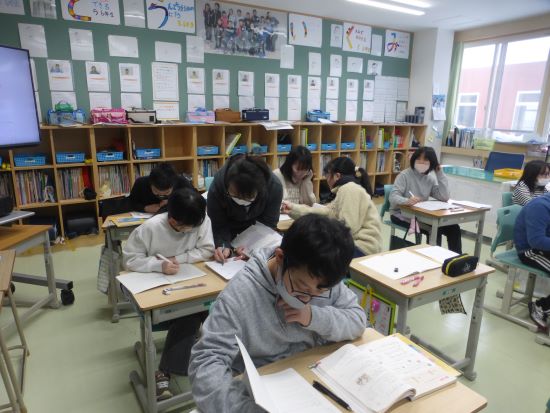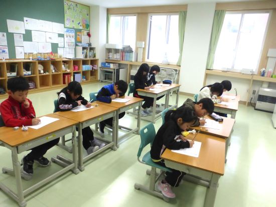 以下2年生 読書時間 全員集中して読書していました。その後、礼文検定に挑戦していました。