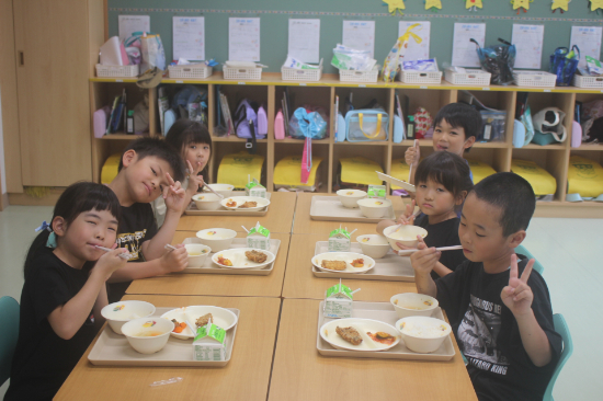 今日 誕生日の礼小っ子がいたので 牛乳乾杯!「誕生日おめでとう! かんぱーい!」
