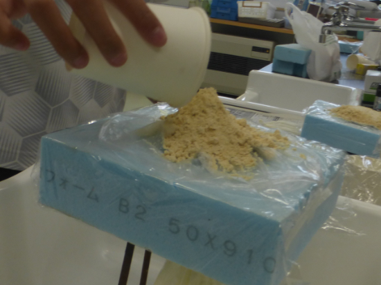 6年理科 マグマの粘度で山の形が決まるが学習を実験で確かめました。
