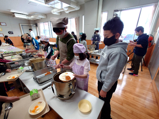3・4年生が素早く給食室に来て準備の準備をしてくれました。 スムーズに配膳ができました。